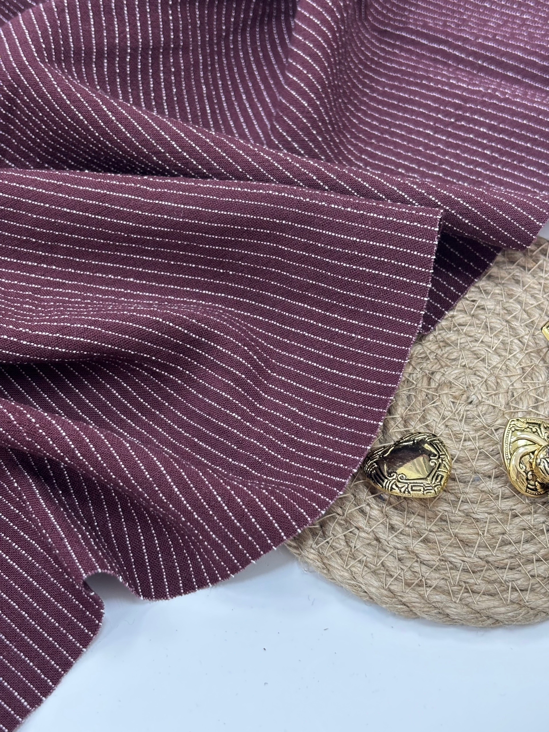 Безусловный хит сезона умягченный, плотный лен в полоску Плотность 200 г/м — это не тонкая "марлевка", а полноценный костюмно-плательный вес. Тактильность: Вискоза убрала льняную колкость. Можно шить без подклада, коже будет комфортно.Ткань не просвечивает, она плотная Пластика: Она мягче чистого льна, но держит форму. На юбку-карандаш или шорты со стрелками — идеально. Принт: Тонкая нитевидная полоска. Визуально это "сухая" классика, которая не рябит в глазах. Полоска здесь деликатная, графитичная - визуально вытягивает силуэт и добавляет изделию премиальности. Сминаемость: Она есть! Но заломы мягкие, благородные, а не "жеваная бумага".» Усадка: До 5-7%. Обязательно декатировать перед кроем! Шьем платья-рубашки и сарафаны, костюмы, жилеты, жакеты, костюмы в пижамном стиле. .Мужские и женские повседневные рубашки.Широкие брюки-палаццо.