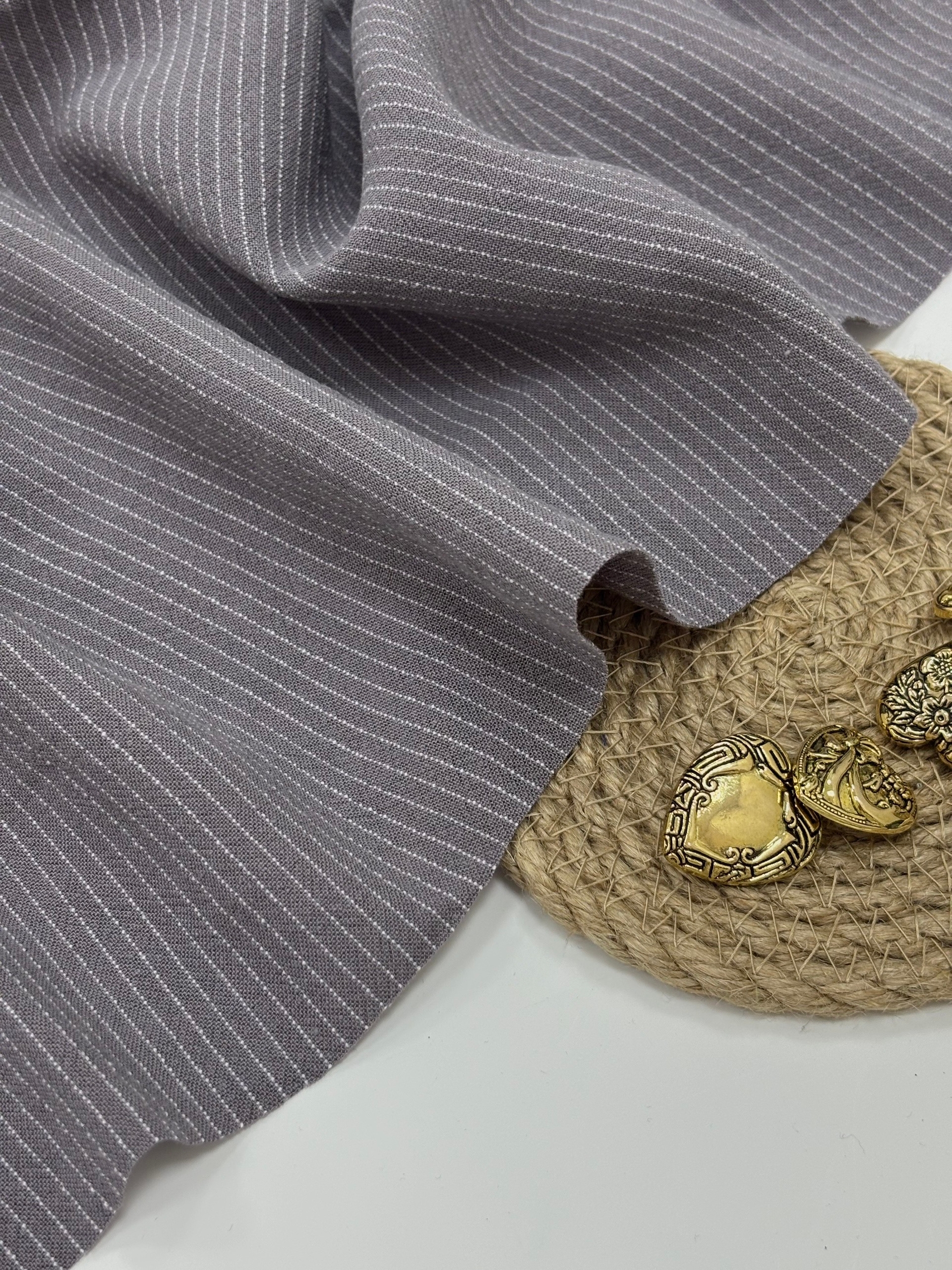 Безусловный хит сезона умягченный, плотный лен в полоску Плотность 200 г/м — это не тонкая "марлевка", а полноценный костюмно-плательный вес. Тактильность: Вискоза убрала льняную колкость. Можно шить без подклада, коже будет комфортно.Ткань не просвечивает, она плотная Пластика: Она мягче чистого льна, но держит форму. На юбку-карандаш или шорты со стрелками — идеально. Принт: Тонкая нитевидная полоска. Визуально это "сухая" классика, которая не рябит в глазах. Полоска здесь деликатная, графитичная - визуально вытягивает силуэт и добавляет изделию премиальности. Сминаемость: Она есть! Но заломы мягкие, благородные, а не "жеваная бумага".» Усадка: До 5-7%. Обязательно декатировать перед кроем! Шьем платья-рубашки и сарафаны, костюмы, жилеты, жакеты, костюмы в пижамном стиле. .Мужские и женские повседневные рубашки.Широкие брюки-палаццо.