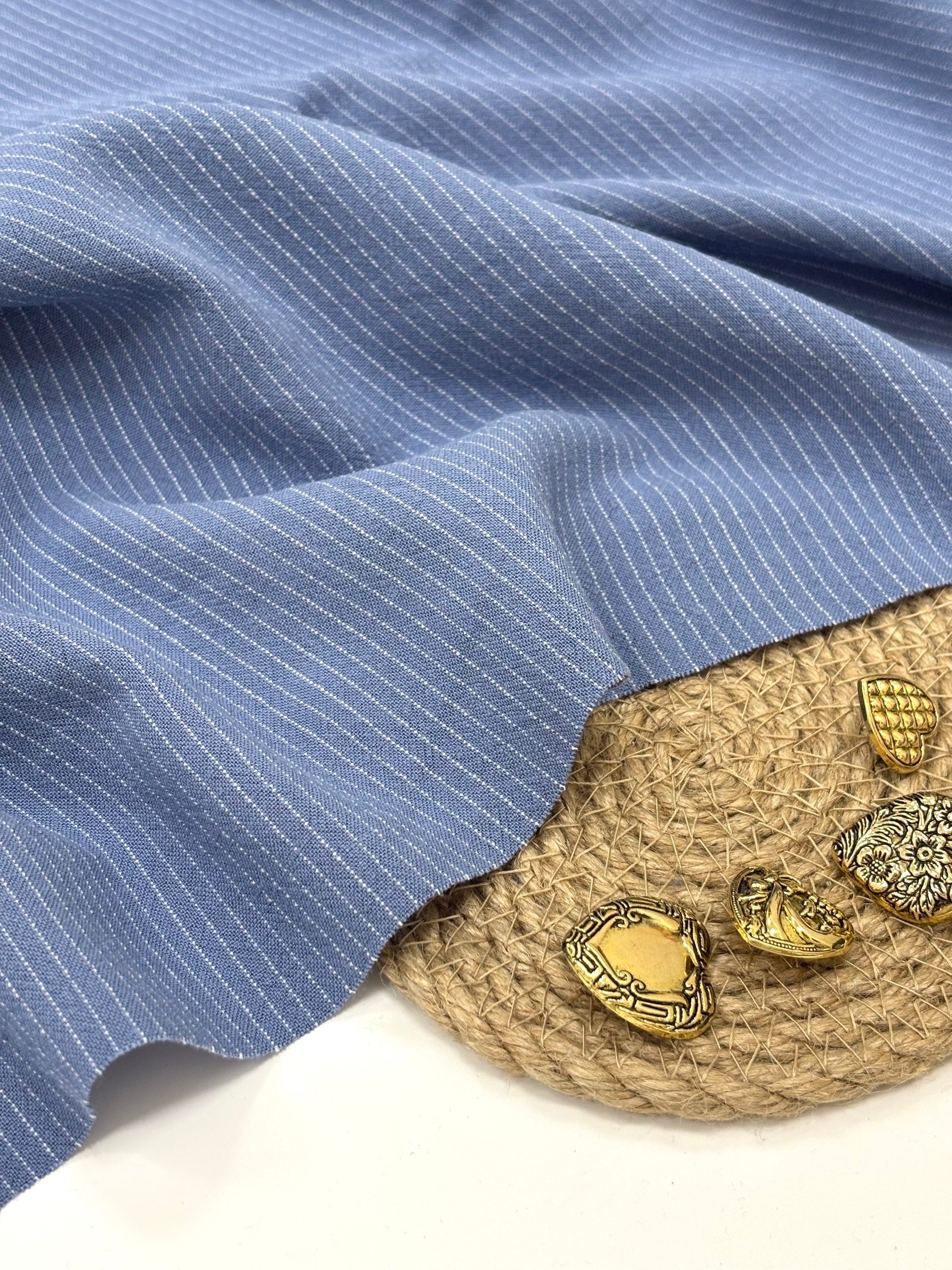 Безусловный хит сезона умягченный, плотный лен в полоску Плотность 200 г/м — это не тонкая "марлевка", а полноценный костюмно-плательный вес. Тактильность: Вискоза убрала льняную колкость. Можно шить без подклада, коже будет комфортно.Ткань не просвечивает, она плотная Пластика: Она мягче чистого льна, но держит форму. На юбку-карандаш или шорты со стрелками — идеально. Принт: Тонкая нитевидная полоска. Визуально это "сухая" классика, которая не рябит в глазах. Полоска здесь деликатная, графитичная - визуально вытягивает силуэт и добавляет изделию премиальности. Сминаемость: Она есть! Но заломы мягкие, благородные, а не "жеваная бумага".» Усадка: До 5-7%. Обязательно декатировать перед кроем! Шьем платья-рубашки и сарафаны, костюмы, жилеты, жакеты, костюмы в пижамном стиле. .Мужские и женские повседневные рубашки.Широкие брюки-палаццо.