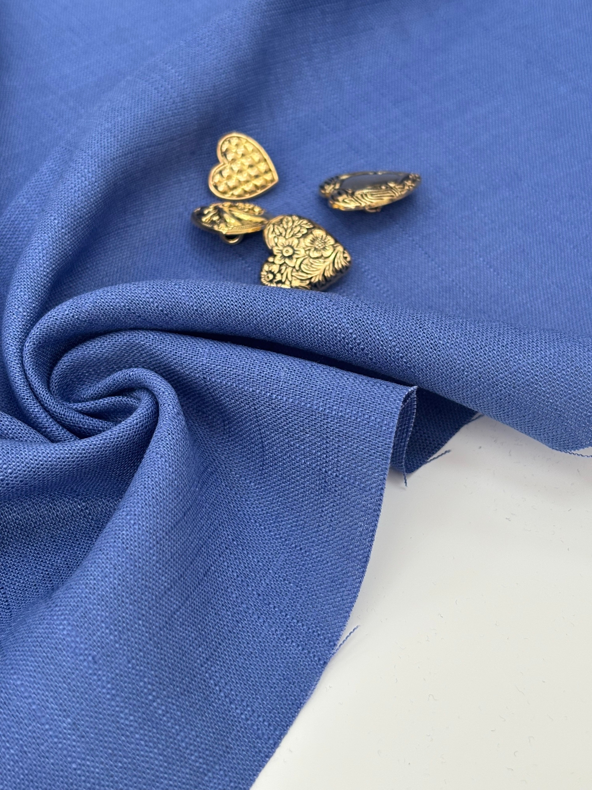 Лен с вискозой это смесовое полотно льна и вискозы. Структура полотна с выраженной фактурой льна, лицо и изнанка мало отличаются и выглядят практически одинаково. Лен немного мнется, вискоза все таки сглаживает и не ткани излишне смитнаться. Также за счет нежных и гладких волокон вискозы лен не колется, полотно становится более гладкое. Драпировка полотна плотная, складка получается объемная, без провисания, подходит для пошива изделий с объемными деталями: воланы, бантовые складки, рукава-фонарики итд. Срез осыпается, обработойте его на оверлоке и подогните или сделайте двойную подгибку, застрочив на прямострочной машине. Ткань немного просвечивает, но при использовании телесного белья, можно не делать подкладку, но в светлых оттенках подкладка все-таки понадобится. Лен с вискозой не тянется ни по ширине, ни по длине. Яркие и насыщенные оттенки обязательно притянут ваш взгляд и вы сразу придумаете, что же вы хотите сшить из этого уникального полотна. А сшить можно юбку, шорты, брюки, платья, косынки, рубашки, сарафаны, жакеты.